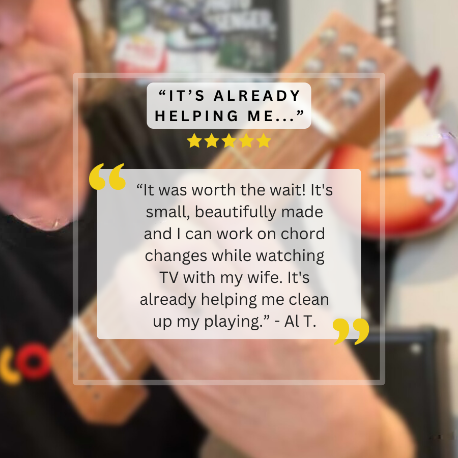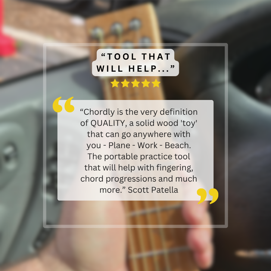 Many touring musicians and fast players use tools like this to keep their “twitch muscles” in top shape before a set. One guitarist even shared that she left her guitar at home during a trip and ended up practicing more than ever with her Chordly because it was so convenient to use on the go - even by the pool!