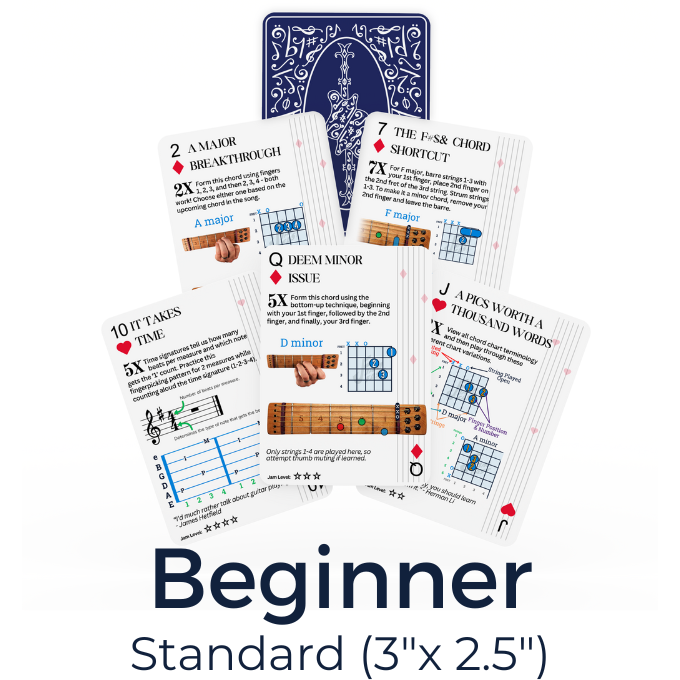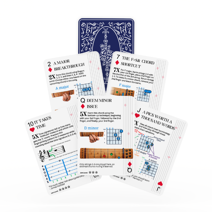 The beginner deck comes with a follow-along sequence, which places the cards in order of difficulty to build up your guitar knowledge and playing.
