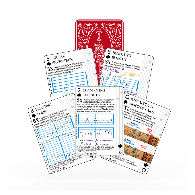 The intermediate deck is perfect for the guitarist who has already mastered the basics and is looking for new practice routines and exercises to keep growing their skillset.
