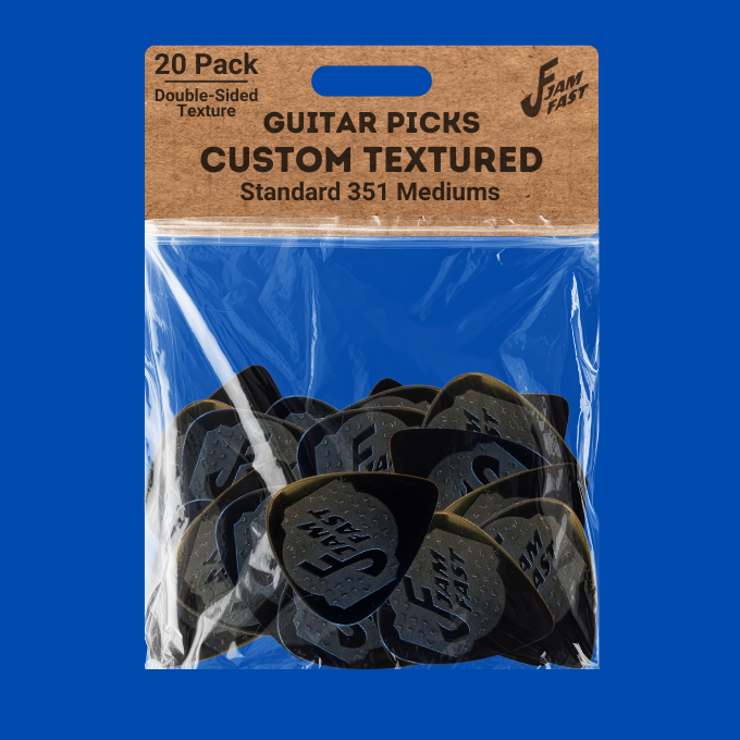 Picks come in a pack of 20 and are textured on BOTH sides for maximum grip.
